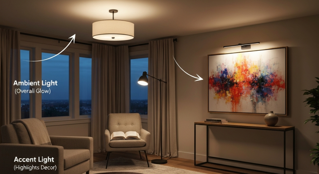 Think of it like painting a picture. You start with a base color (ambient), add the main subjects (task), and then finish with small details and highlights that draw the eye (accent). When these layers work together, they eliminate harsh shadows, reduce glare, and give you complete control over the mood and functionality of your room. It’s the difference between a flat, one-dimensional room and one that feels rich, warm, and alive.